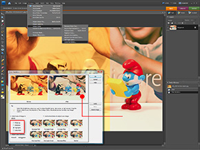 In het dialoogvenster Verzadiging/Kleurtoon (Ctrl-U) worden de wijzigingen standaard op alle kleuren toegepast, maar je kunt ook een apart kanaal kiezen, zoals Rood, Geel, Groen, Blauw, Cyaan en Magenta. Zo kun je heel artistieke plaatjes maken. Ooit wel eens een groene smurf gezien?