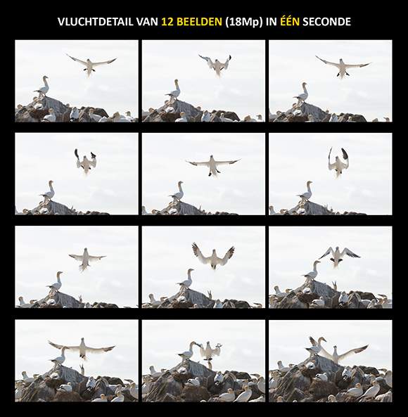 EOS 1D Xperience Over de EOS 1D X toch even een apart kadertje, hoewel een heel boek deze camera meer recht zou doen. Een prachtcamera, die eigenlijk precies doet wat je als fotograaf wilt; héél snel en accuraat scherpstellen, perfect belichten en nog eens kwalitatief zeer hoogstaande beelden 'afleveren', zelfs wanneer de ISO-knop hoger opgeschroefd moest worden! De motordrive functie is weliswaar een aanslag op de geheugenruimte van je kaartjes, maar 12 beelden van 18 Mp per seconde om een landende Jan van Gent te volgen zijn toch wel erg handig! Zeker als de autofocus op de Servo AF stand het dan ook nog gewoon erg goed doet en de vogel bijna geen enkele frame uit het oog verliest! De eerste paar keer geeft dat een behoorlijk kippenvelgevoel. En als er drie van zulke camera's naast elkaar staan ook nog behoorlijk wat 'lawaai'.. :) ! De eerste dag was ik nog een beetje 'voorzichtig' en had ik hem zes beelden per seconde gezet (zoals maximaal bij de EOS 5D mark III), maar dan loop je toch de kans om met name bij vliegbeelden net die ene opname te missen, waarbij de vleugels precies goed staan. De autofocusinstelling is trouwens niet eenvoudig, in die zin dat er zoveel mogelijkheden zijn dat je gaat twijfelen of er nog een 'betere instelling' zou kunnen zijn. Tijdens de workshop heb ik van Guy Edwardes de nodige tips gekregen voor de juiste instellingen uitgaande van de AF-Presets. Hij gebruikt de camera overigens al sinds hij op de markt is en hij is er erg lovend over! De camera 'voelt' ook erg goed aan, zeker in combinatie met bijvoorbeeld een 300mm. Alles is dan mooi in balans! Kortom; het was een voorrecht deze camera te kunnen gebruiken!