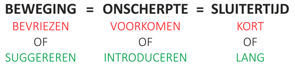 Omdat we niet allemaal een wiskundeknobbel hebben of een rekenmachine bij de hand, is het handiger om gewoon onderstaand lijstje als leidraad voor ‘bevroren beweging’ te nemen. Is dat ook moeilijk om te onthouden, kies dan - als je voldoende belichtingsruimte hebt - altijd 1/1000s of korter, dan staat de meeste beweging stil en scherp op de foto.