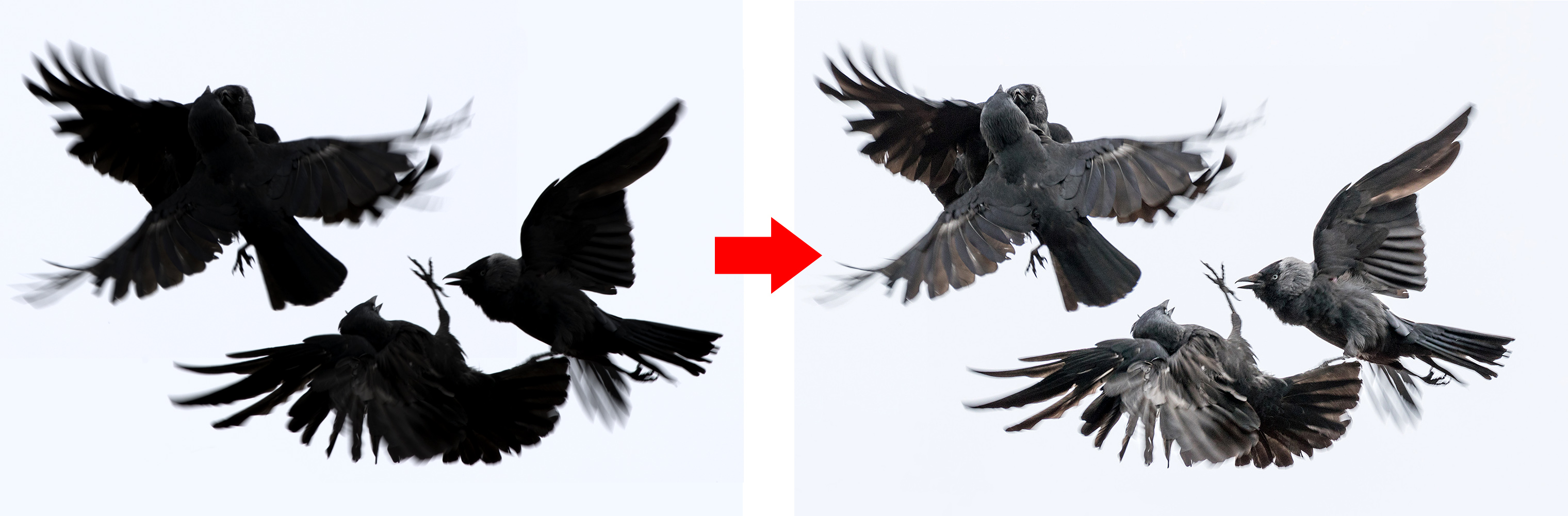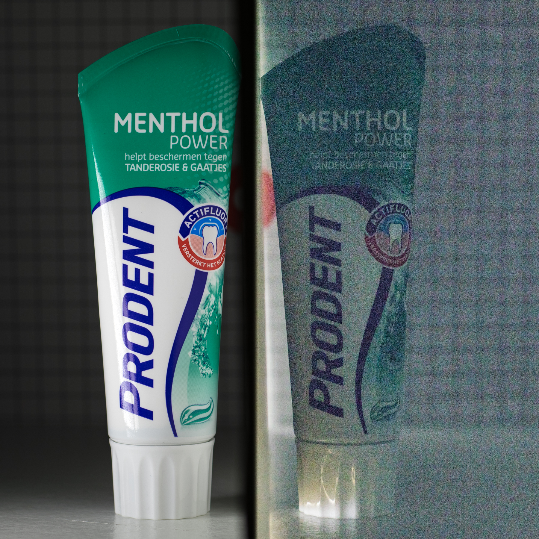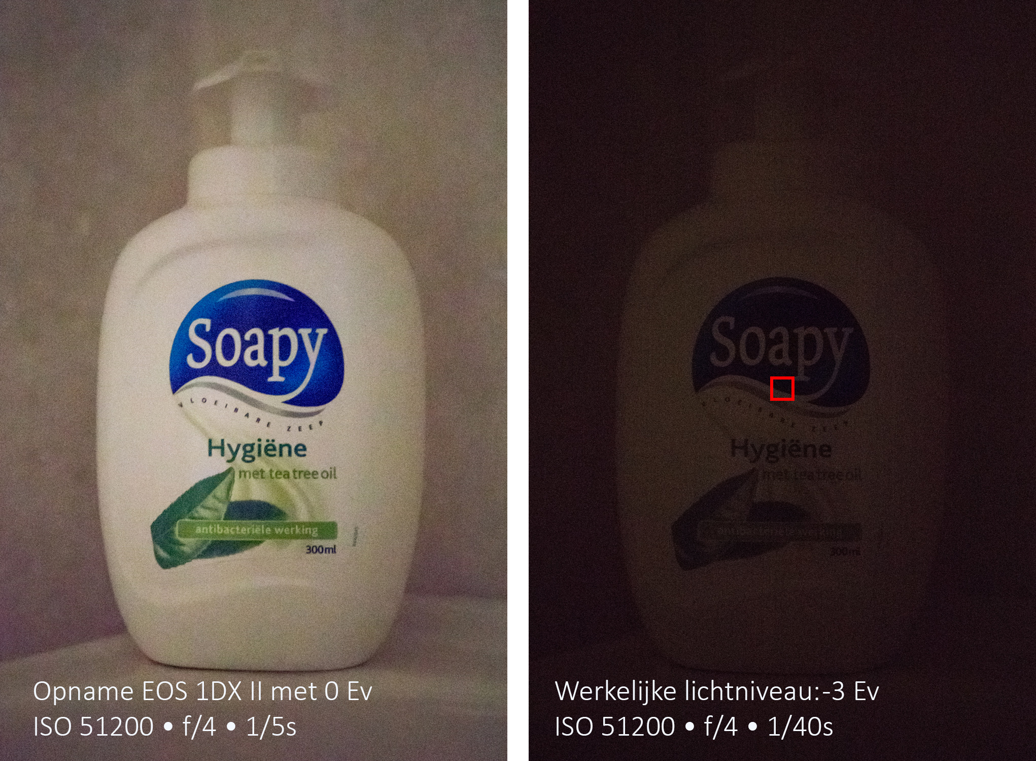 Onderstaand een vergelijking tussen de ‘shadow recovery’ van de EOS 5D mark III, de EOS 80D en de EOS 1DX mark II: twee voorwerpen in de donkere ruimte gescheiden door een stuk karton en het linker voorwerp sterk belicht met een led-lamp. Het rechter gedeelte is later verhelderd in Lightroom. De beelden spreken voor zich en de EOS 1DX mark II is de absolute winnaar!