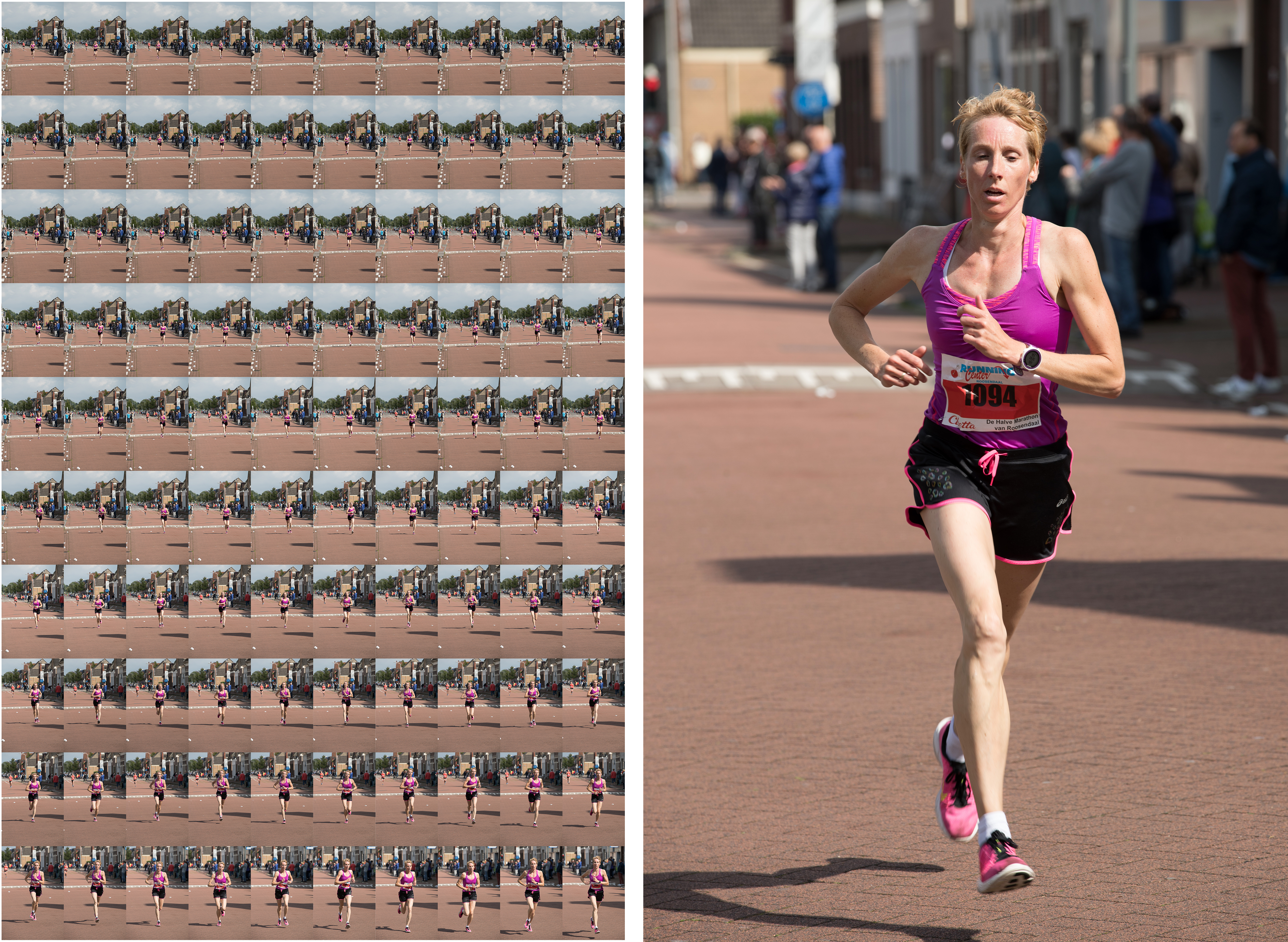 Natuurlijk zijn we met de EOS 1DX mark II op stap geweest om zijn snelheid te testen. En dat is een bijzondere ervaring, want niet elke camera schiet 14 RAW foto’s van 20 Mp per seconde en dat bijna oneindig lang. Of tijdens Live view met 16 RAW’s per seconde. Waanzinnig. Alsof je een mitrailleur in de hand hebt. Heavy stuff, maar je voelt je o zo machtig! We hebben hardlopers, auto’s en tennissers gevolgd en daar draait de EOS 1DX mark II zijn hand niet voor om. De autofocus is voor elk onderwerp te finetunen en zorgt dat je altijd het juiste onderwerp scherp hebt. Het is wel jammer dat de 61 AF-punten niet helemaal tot de rand van het kader verdeeld zijn. Je moet het onderwerp dus accuraat volgen. Ook moet er voldoende contrast zijn. Een vliegende duif tegen een blauwe lucht is geen probleem, maar een meeuw tegen een grijze lucht is minder eenvoudig. Ook heel kleine onderwerpen, zoals vliegende vlinders zijn een uitdaging. Maar die zou je dus kunnen filmen met een iets grotere scherptediepte en dan een frame uit de clip kunnen halen.