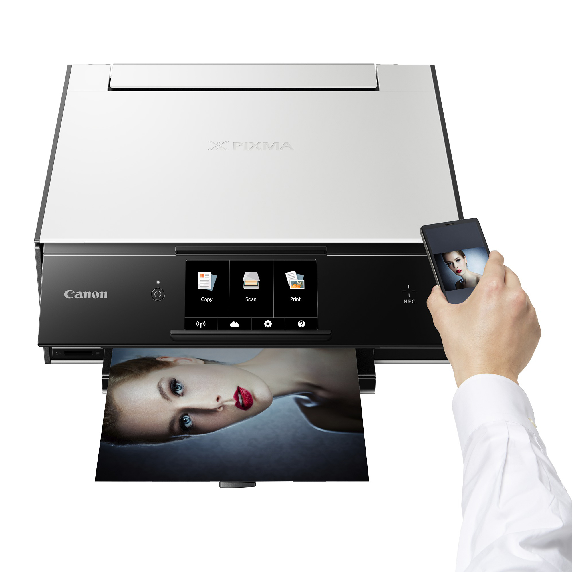 De PIXMA TS9050 is een alleskunnende multifunctional met een hoog ‘beauty’-gehalte. Ze is een pronkstuk in elk interieur. Als eenmaal alle functies zijn geconfigureerd kun je het zo gek niet verzinnen voor wat betreft locatie of apparaat of je kunt er wel vandaan printen. Dus niet alleen via SD-kaart of computer, maar ook telefoon/tablet en camera en zelfs vanuit je social media en de cloud. Als je dat combineert met de nodige creativiteit, dan zul je met deze printer veel jaloerse blikken van familie en vrienden krijgen.