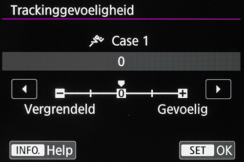 Een voorbeeld hiervan is als je een ijshockeyspeler of handbalster volgt en een andere speler kruist voorlangs. Met deze ‘tracking sensivity’ instelling op +1 of +2 is het waarschijnlijk dat de autofocus van je camera zal gaan scherpstellen op de voorlangs kruisende speler. Dit is iets dat je wil voorkomen. Staat de parameter echter op -1 of -2 dan is de kans groter dat je autofocus zal blijven scherpstellen op de sporter die je oorspronkelijk aan het volgen was, zonder een poging te doen om opnieuw scherp te stellen.