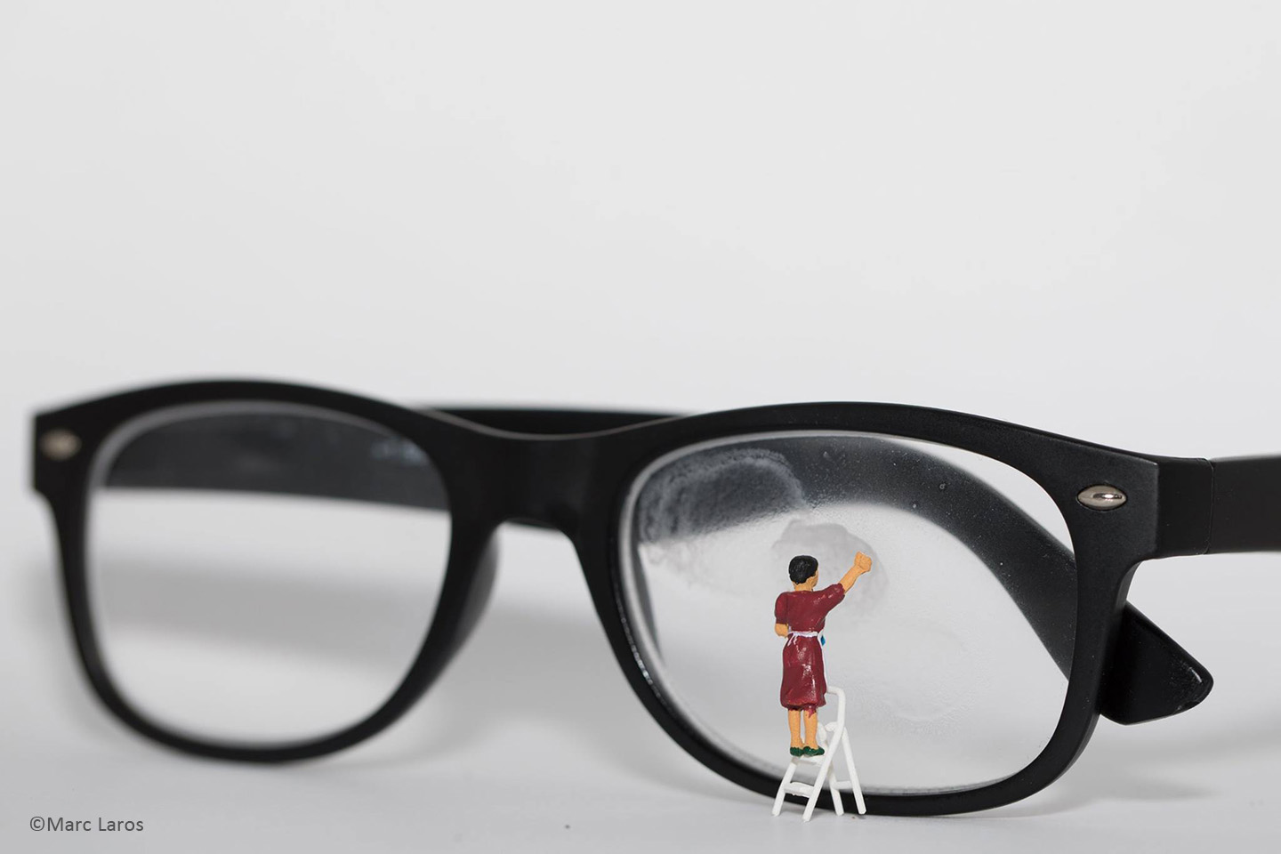 Om de kleine treinfiguren op redelijk formaat in het kader te krijgen is een macrolens of telelens met tussenring (25mm) de aangewezen keuze. Er kan echter ook gewerkt worden met een groothoeklens en een dunne tussenring (12mm), waarbij je dus meer context te zien krijgt. In alle gevallen is de scherptediepte bij grotere diafragma’s heel klein. Daar kun je gebruik van maken om een bepaald beeldkarakter te verkrijgen. Wil je echter meer scherptediepte, dan zul je flink moeten diafragmeren tot f/22 of kleiner. Dat gaat dan wel ten koste van de algemene beeldscherpte ten gevolge van diffractie. Wil je dat niet of heb je zelfs bij f/32 niet de gewenste scherptediepte, dan zul je van een serie foto’s met een steeds iets verschoven scherpstelpunt een focus stack moeten maken. Hoe je zo’n focus stack monteert in Photoshop, zie je in een korte clip (klik hier).