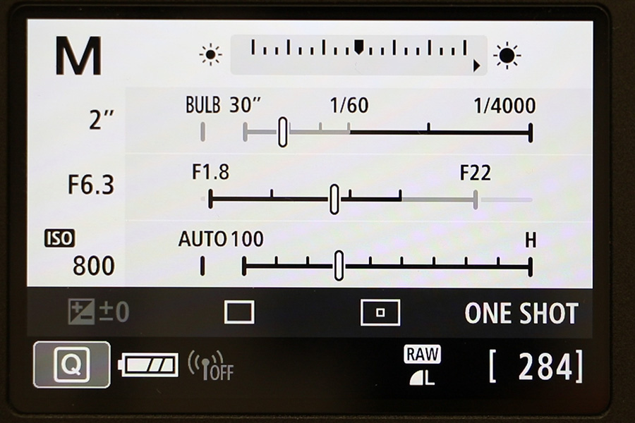 Bijzonder aan de EOS 800D en EOS 77D is dat je als ‘beginnende’ gebruiker in de P-, Av, Tv- en M-stand een aparte opnameweergave kunt oproepen, waarin de gevolgen van bepaalde instellingen visueel worden weergeven, zoals scherptediepte, bewegingsonscherpte en belichtingscompensatie. Met een duidelijke illustratie wordt bijvoorbeeld getoond of je een groot of klein diafragma moet instellen voor een kleine scherptediepte. Zo krijg je sneller gevoel bij de getalletjes en kun je na enige tijd weer de standaardweergave kiezen. Canon heeft voor deze en andere ‘hulpjes’ zelfs een aparte menuknop (cyaan, Display Level) toegevoegd aan de reeds bestaande menu’s.