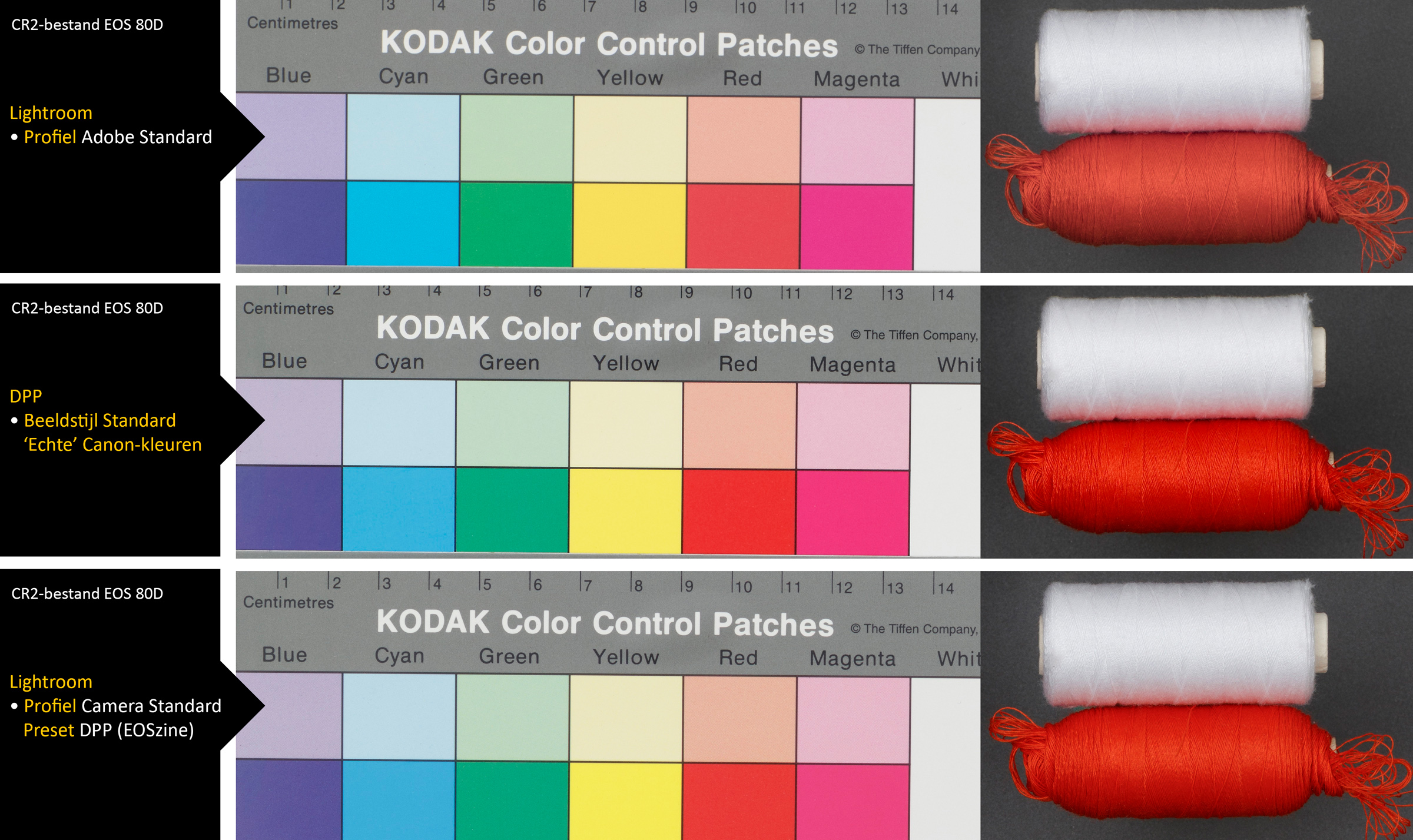 Tot een paar jaar geleden had je in Lightroom niet het vermoeden dat de kleuren en contrast van Canon-RAW’s veel anders waren dan wat je op je camera had gezien en wat DPP zou produceren. Bij de introductie van de EOS 7D mark II (september 2014) zagen we plotseling bij het openen van onze testcasefoto’s dat vooral het rood minder verzadigd was en dat het contrast van de previews veel lager was dan bij RAW-bestanden van eerdere EOS-modellen. De eerste gedachte was dat we een foute instelling hadden gedaan en toen bleek dat dit niet het geval was, vroegen we ons af of er iets met de sensor aan de hand was. Nee, want Adobe had ervoor gekozen om hun Adobe Standard-profiel voor EOS-RAW af te vlakken, zodat er visueel meer ruimte is voor aanpassingen.