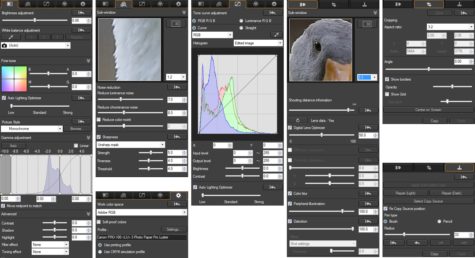 Om een RAW-bestand om te zetten naar een bewerkbaar en publiceerbaar beeld, is een RAW-converter nodig. Photoshop Elements en CC hebben een zeer capabele Adobe Camera RAW-module die de RAW-bestanden keurig omzet naar JPEG of TIFF. En ook Lightroom kan uitstekend met de RAW-bestanden van EOS camera’s overweg. Voor een exacte kleurovereenstemming en maximale detaillering, levert Canon echter gratis een eigen complete en professionele RAW-converter mee met EOS-camera’s, te weten Digital Photo Professional. Dit is heel uniek in het segment ‘consumenten-DSLR’. Helaas is DPP niet in het Nederlands verkrijgbaar en is voor deze beschrijving van de mogelijkheden de Engelse uitgave gebruikt.