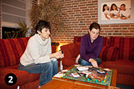 De eerste opname hebben we in de P-stand gemaakt zonder flits bij ISO 1600. Bij f/4 hebben we dan een sluitertijd van 1/20s. Dankzij beeldstabilisatie is dit kort genoeg om bewegings-onscherpte door trilling van de camera te voorkomen. De foto is redelijk scherp en ietwat warm van kleur, maar voor een kleine afdruk zeker bruikbaar. Zodra we de foto echter groter afdrukken of willen bewerken, zien we snel ruis verschijnen. En de 'lange' sluitertijd geeft een verhoogde kans op bewegingsonscherpte van het onderwerp (let op de hand).