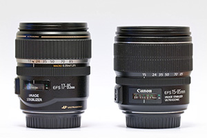 EF-S 15-85mm 1:3,5-5,6 IS USMDestijds waren we superblij met de EF-S 17-85mm IS. Maar liefst 5x optische zoom, startend bij een redelijke ruime groothoek van 27,2mm op kleinbeeld. Ook de beeldstabilisatie was natuurlijk van harte welkom en maakte de lens, ondanks zijn beperkte lichtsterkte (bij 17mm: f/4 en bij 85mm: f/5,6) ook geschikt om bij minder licht langer scherpe foto's uit de hand te kunnen maken. Dankzij zijn goede constructie en relatief lichte gewicht is het nog steeds voor veel fotografen een prima 'allround'-lens voor dagelijkse onderwerpen en voor op reis. Gezien zijn prijs is de beeldkwaliteit heel acceptabel, hoewel hoekonscherpte en chromatische aberratie bij de maximale diafragma's zichtbaar aanwezig zijn.