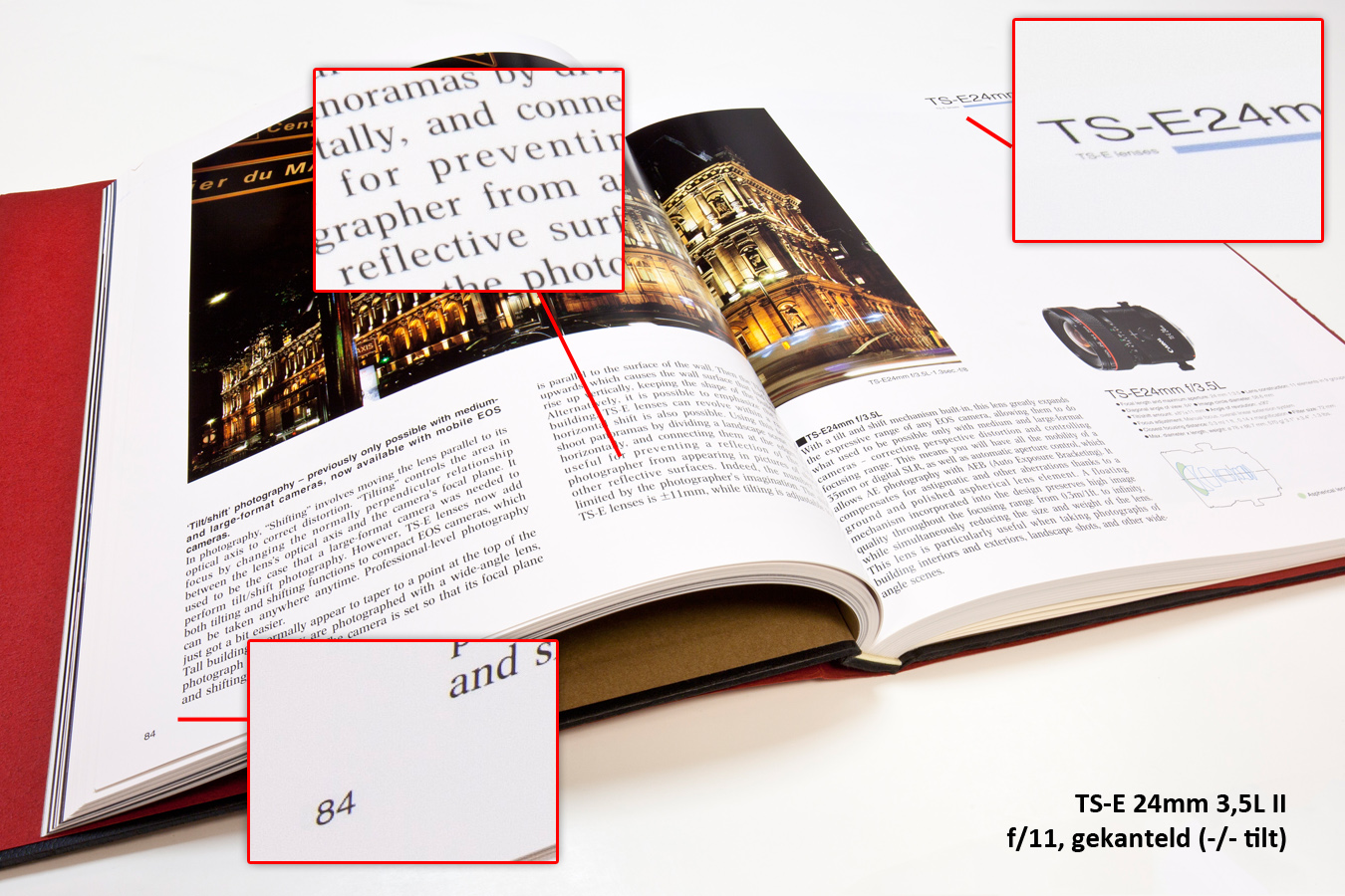Het hier besproken objectief is weer een hele mond vol met afkortingen. TS staat voor Tilt & Shift, oftewel kantelen en schuiven. Ze heeft een vast brandpunt van 24mm met een maximaal diafragma van f/3.5. De L geeft aan dat de lens stof- en spatwaterdicht is en de II staat voor de tweede generatie. Tenslotte is de filterdiameter 82mm. Verder zijn speciale materialen en coatings toegepast en is ten opzichte van zijn voorganger de beeldcirkel vergroot van 58,6 tot 67,2mm. Al deze gegevens zorgen ervoor dat dit objectief - bij gebruik als 'gewone' 24mm - géén vervorming, géén chromatische aberratie, géén hoekonscherpte en géén vignettering kent!!!! Ze genereert onbetwist (zie muurfoto's) de beste beeldkwaliteit van alle 24mm-alternatieven in het gehele Canon-lenzenassortiment, zo niet van álle merken.