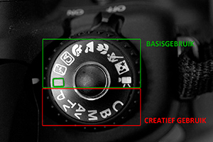 Fotografeer je altijd in de groene stand, dan wordt het de hoogste tijd de programma-keuzeknop eens op zijn functionaliteit te onderzoeken. Stap eerst eens over op de Basis-gebruikprogramma's en vervolgens via de P-stand naar Av- en Tv. Experimenteer naar harte lust, want het maken van foto's kost geen geld en uit deze praktische ervaringen leer je erg snel wat de camera wel en niet kan in een bepaald belichtingsprogramma.