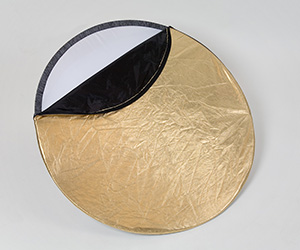 Een invulflits is dus een snel en altijd beschikbaar hulpmiddel om bij felle zon donkere schaduwen op korte afstand van de camera te verhelderen. Je kunt echter vooraf het resultaat slecht inschatten en ze is moeilijk te gebruiken bij (zonne)brildragers. Een reflector kan dan uitkomst brengen. Je denkt dan waarschijnlijk aan een professionele uitvoering die je kunt opvouwen en die meerdere kleurzijden heeft. Maar ook een wit stuk karton of een plaat omkleed met gekreukt aluminiumfolie heeft nagenoeg hetzelfde effect en is op vakantie snel te improviseren. Met een reflector kun je vooraf bepalen hoe je het gereflecteerde zonlicht op het model richt. Bij een buste- of headshot kan het op de schoot van het model liggen, enigszins naar het model toe gericht. Komt de zon van de zijkant, dan kun je iemand vragen de reflector vast te houden en te richten op de schaduwkant van het model. Terwijl je aan het 'spelen' bent met een of meerdere reflectors kun je al direct het resultaat zien. Zo kun je heel subtiel donkere schaduwen met zonlicht 'invullen'. De ‘kracht van een reflector wordt snel minder als de afstand tot het model groter wordt. Het gereflecteerde licht wordt dan wel veel zachter.