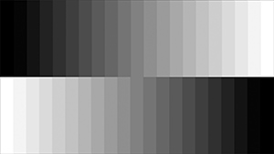 De helderheid en het contrast kan beoordeeld worden met een grijsbalkverloop (klik