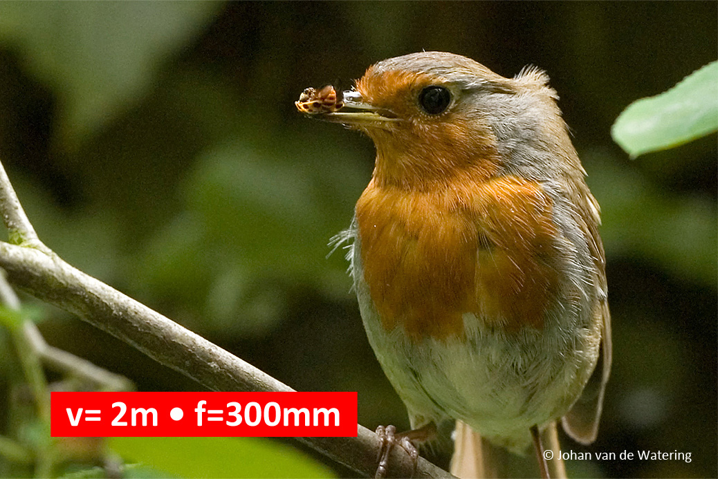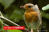 Je ziet in je tuin koolmezen, roodborstjes en mussen zich tegoed doen aan vetbolletjes of pinda's die je hebt weggehangen. Het zijn dan natuurlijk fantastische fotomodellen en je schiet snel met je camera met kitlens (18-55mm) enkele leuke plaatjes. Helaas vallen de resultaten vaak tegen. Niet alleen omdat de vogels heel bewegelijk zijn en omdat een dergelijke sessie de nodige voorbereiding verlangt, maar ook omdat de vogeltjes relatief klein op de foto staan. Je hebt dus een telelens nodig, waarmee je ver kunt inzoomen. Maar hoe ver haalt zo'n lens zo'n vogeltje dichterbij?