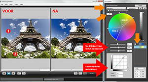Je kunt zo een oneindig aantal varianten maken op thema's als Portret, Landschap of Product, maar je kunt er ook heel artistieke filters mee maken. Klik dan direct in het kleurenwiel en gebruik extreme waarden van HSL. Klik je vervolgens weer in de foto, dan kun je de Toon-kromme verslepen. Na even oefenen, maak je zo extreme contrasten.