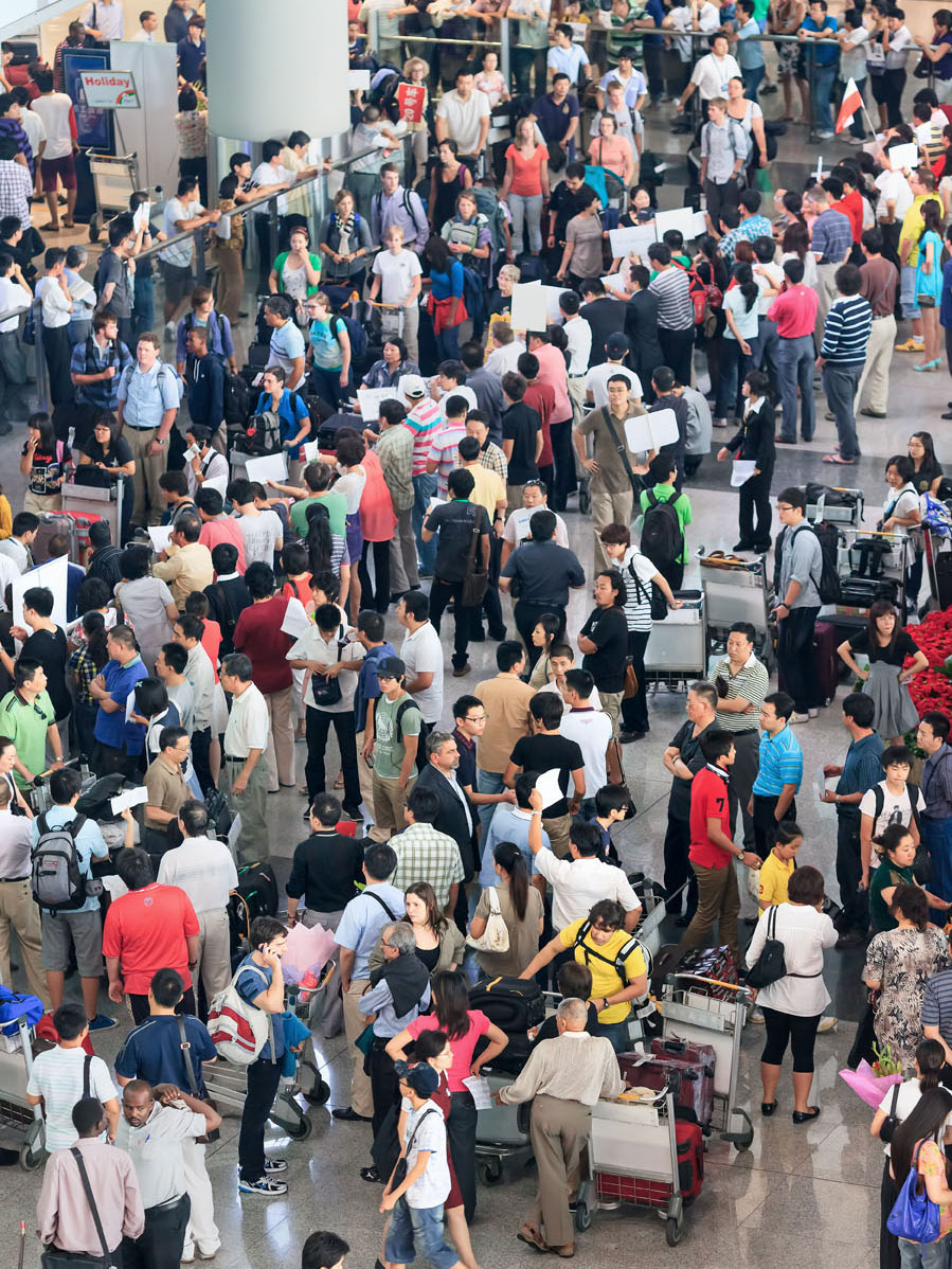 In 2012 maakte in een voltreffer in Beijing Capital International Airport Terminal 3 met een gigantische massa reizigers, die ik vanaf een hoog standpunt kon fotograferen. Vanwege de lichtomstandigheden kon dat niet anders dan met ISO 2500 en f/3.5 wat voldoende was voor een sluitertijd van 1/125s, zodat ik met mijn EF 135 f/2L een scherp shot kon maken zonder bewegingsonscherpte. Na zorgvuldige bewerking (noise reduction) werd de foto zelfs nog door Shutterstock geaccepteerd!