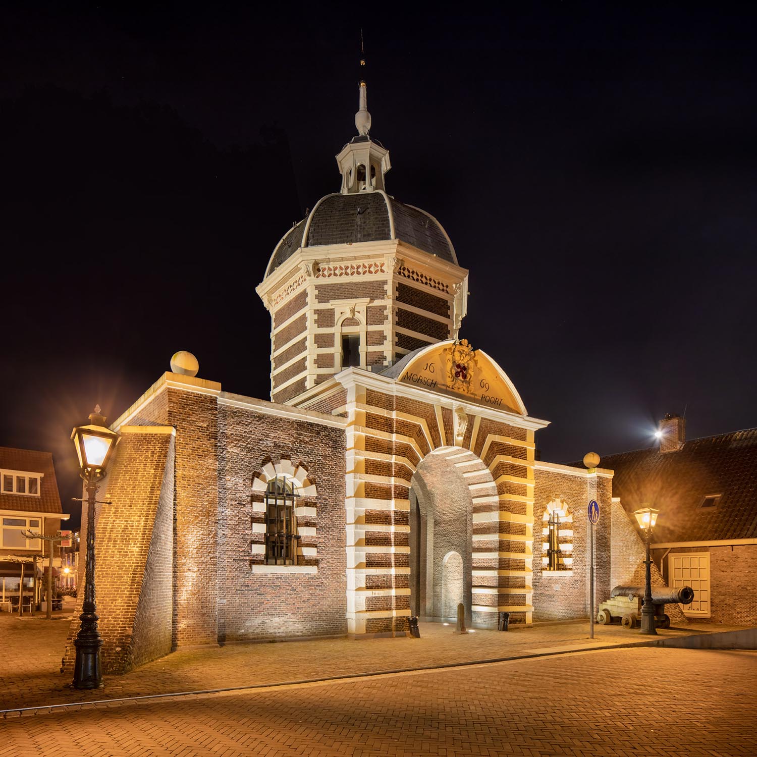 Ook de route voor de photo walk was nu helemaal anders om elke afzonderlijke fotolocatie zo goed mogelijk uit de verf te laten komen. Het programma startte bij Café Havenzicht met een masterclass architectuurfotografie gevolgd door een overheerlijke maaltijd, waarna we de iconische stadshaven als eerste locatie gingen fotograferen. Vervolgens zijn we naar de Waterpoort gewandeld (ook wel Veerpoort genoemd) die lastig is te fotograferen door summiere verlichting. Bij zulke omstandigheden maak je doorgaans meerdere belichtingen dat je later in de nabewerking alle speelruimte geeft om een ideale lichtbalans te verkrijgen in je foto.