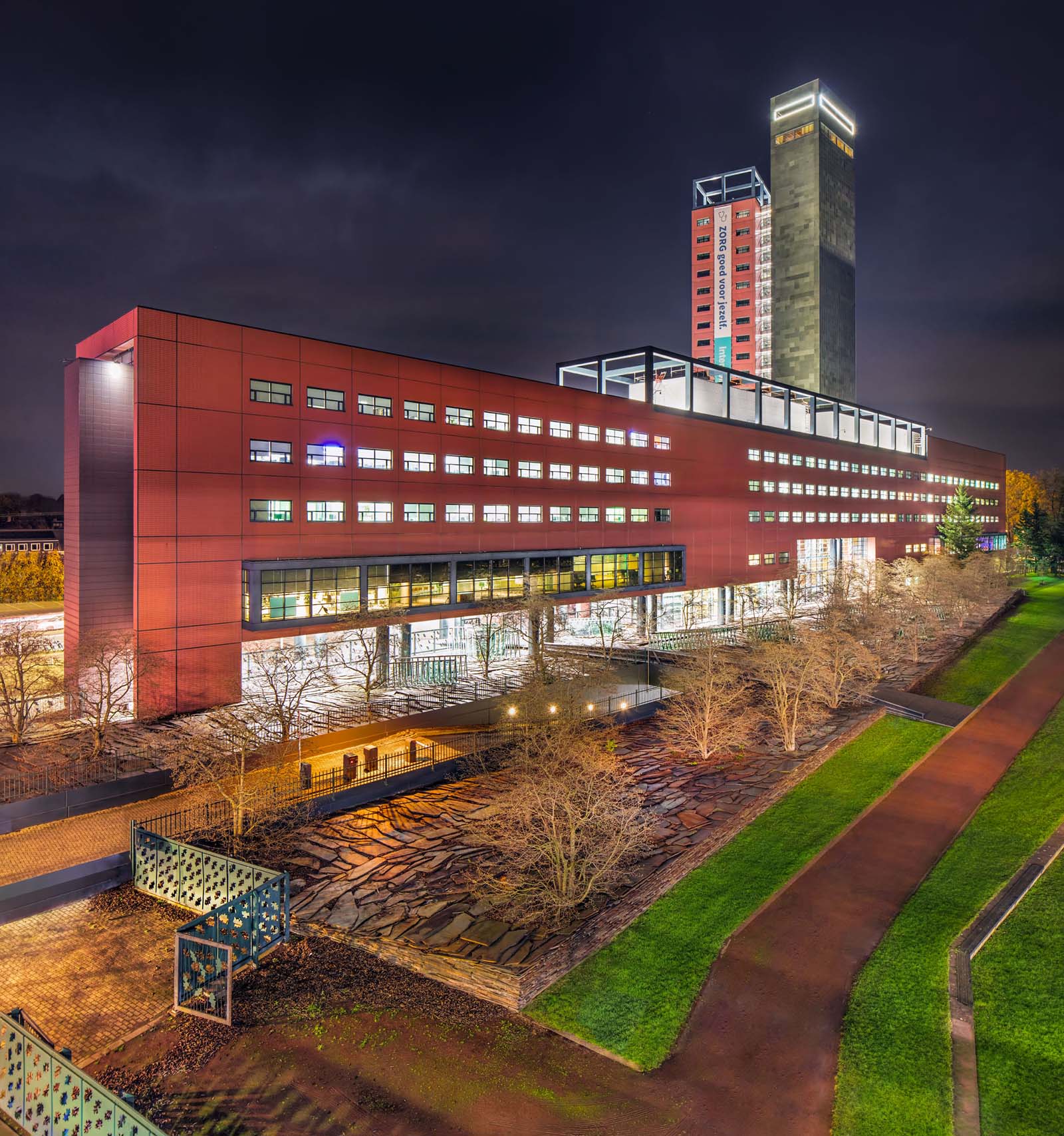 Vanwege de drukke perifere bebouwing zijn de ideale invalshoeken minimaal. Ook staat er op het uit de kluiten gewassen plein een flinke mast met verlichting die je liever niet in beeld hebt. Ik heb die eerste keer behoorlijk staan schuiven met het statief totdat ik het gebouw in z’n totaliteit kon framen. Daarnaast heb ik toen enkele close shots gemaakt van de enorme glazen gevel, maar daar bleef het bij. Na die shoot en editing had ik wel het voornemen om terug te gaan voor meer.