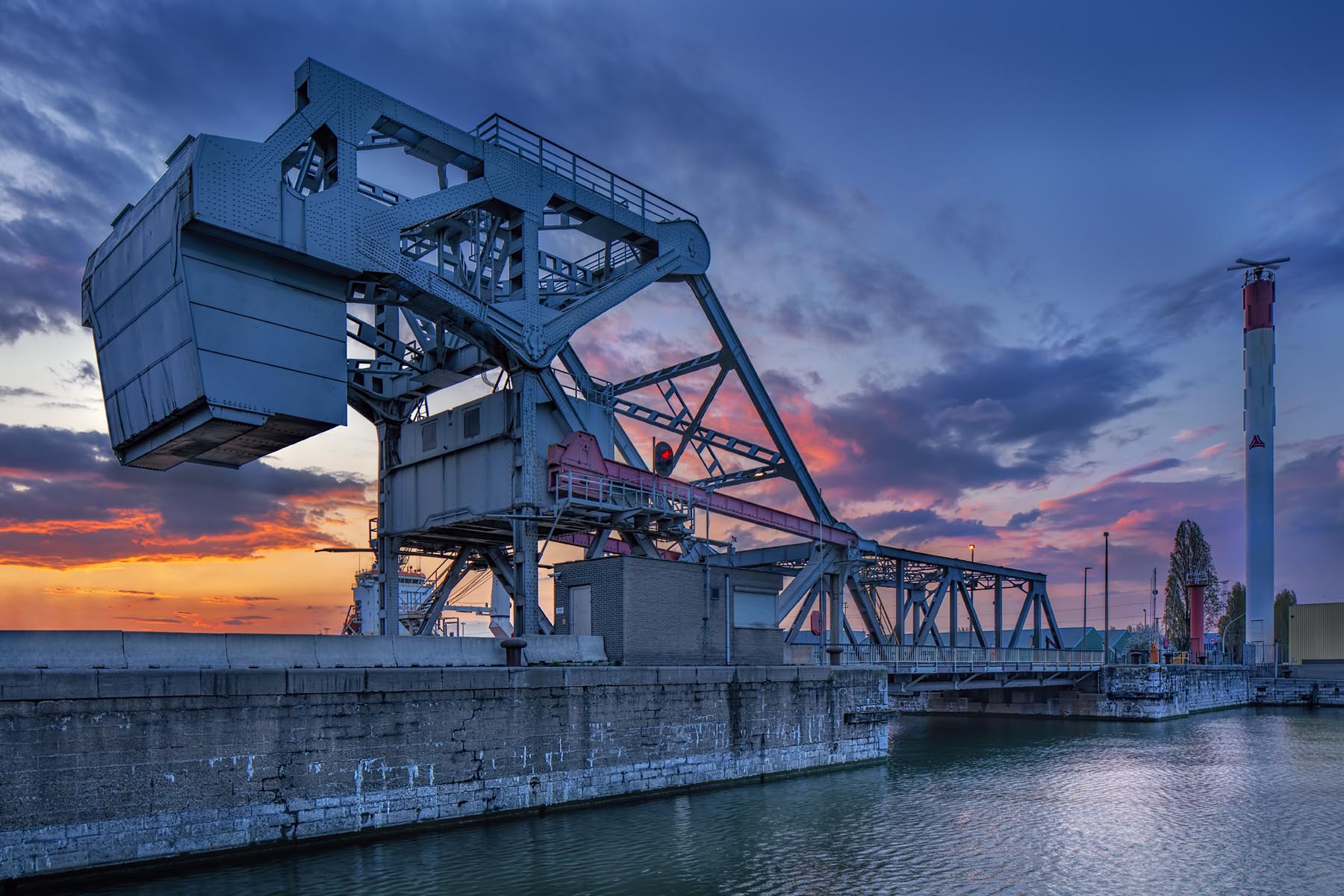 Niet zo ver in het uitgestrekte havengebied (Port of Antwerp-Bruges) vind je bij het Leopolddok de Wilmarsdonkbrug, een monumentale geklonken basculebrug. Hier is beslist geen architect aan te pas gekomen, want het oogt vooral ‘form follows function’ wat het juist zo aantrekkelijk maakt, althans in mijn optiek. Het is een van de fotolocaties van mijn Port of Antwerp Photo Tour, omdat je er vanuit verschillende invalshoeken ongekende foto’s schiet. Een absolute beauty!
