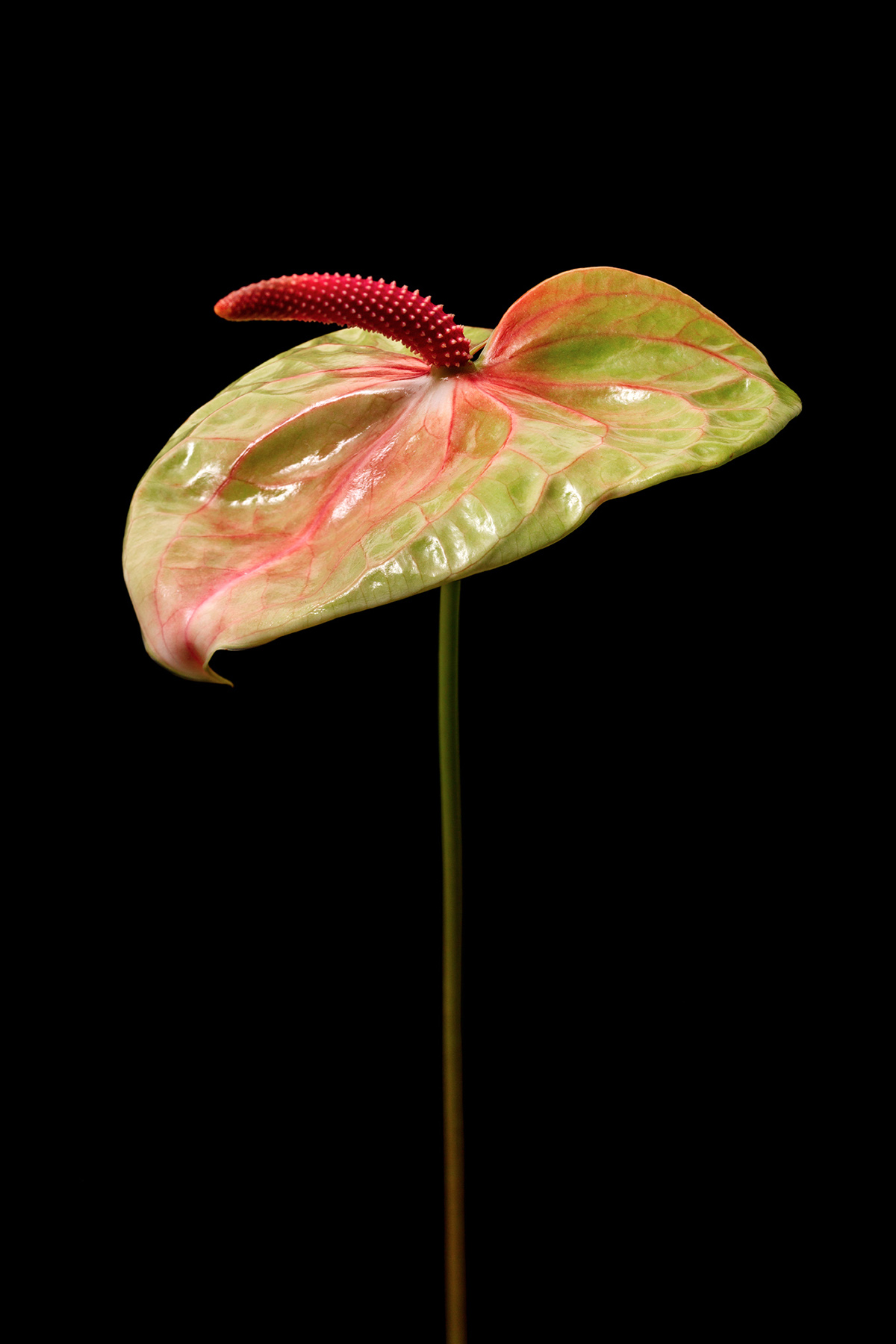 De afgebeelde modelfoto is geschoten met de TS-E 90mm f/2.8L Macro. Helaas kon ik door de wat beperkte ruimte onvoldoende afstand nemen van het model om met de TS-E 135mm f/4L Macro in actie te komen. Maar dat is wellicht iets voor een volgende sessie. Maar met die sublieme 135mm TS-E tilt-shift lens heb ik wel geëxperimenteerd om de fraaie Flamingoplant (Anthurium Adreanum) van voor tot achter scherp in beeld te krijgen door gebruikmaking van het tilt-mechanisme. En dat is me best gelukt.