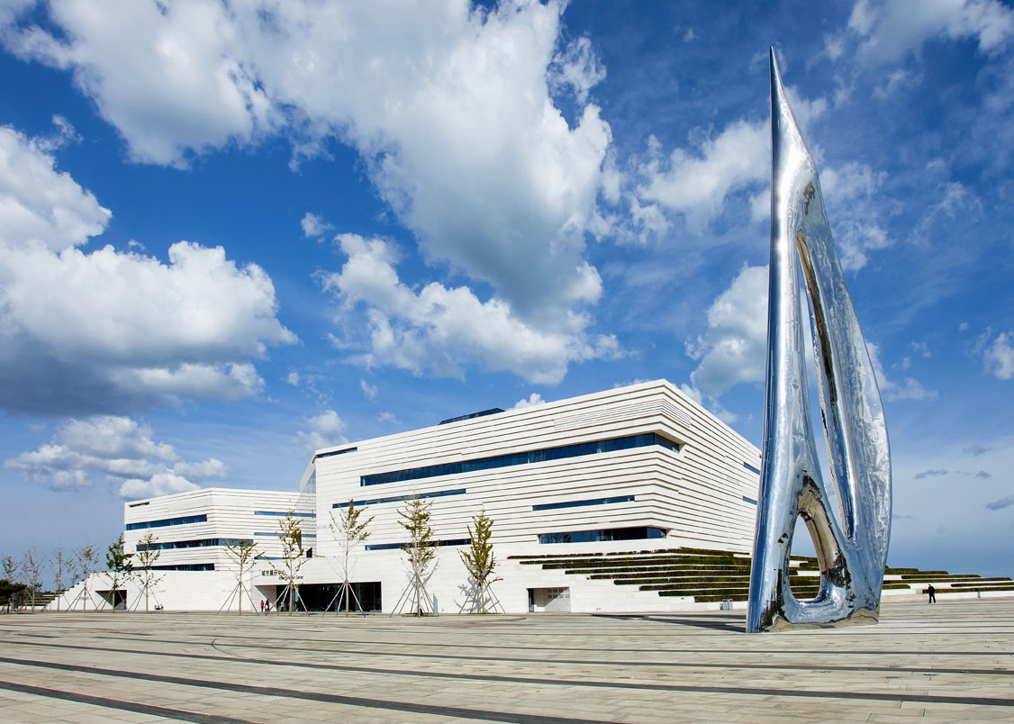 Tijdens ‘n wandeling stuitte ik op het Urban Exhibition Center, opmerkelijke architectuur omringd door elegante objecten en kunstvoorwerpen. Indrukwekkend is vooral ook de dimensionering, iets dat je in Europa zelden tegen zult komen. Omdat ik niet had verwacht veel te gaan fotograferen in Yantai had ik mijn back-up camera, een Canon EOS 5D Mark II, plus de Canon EF 17-40mm f/4L en EF 50 1.4 meegenomen. En die twaalf jaar oude groothoekzoom heeft uitstekend dienst gedaan!