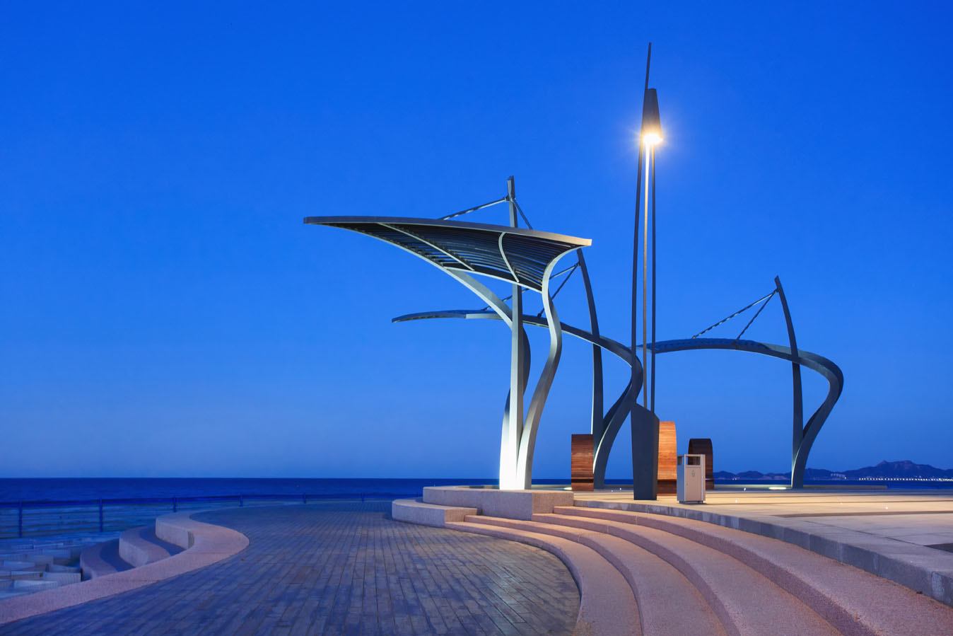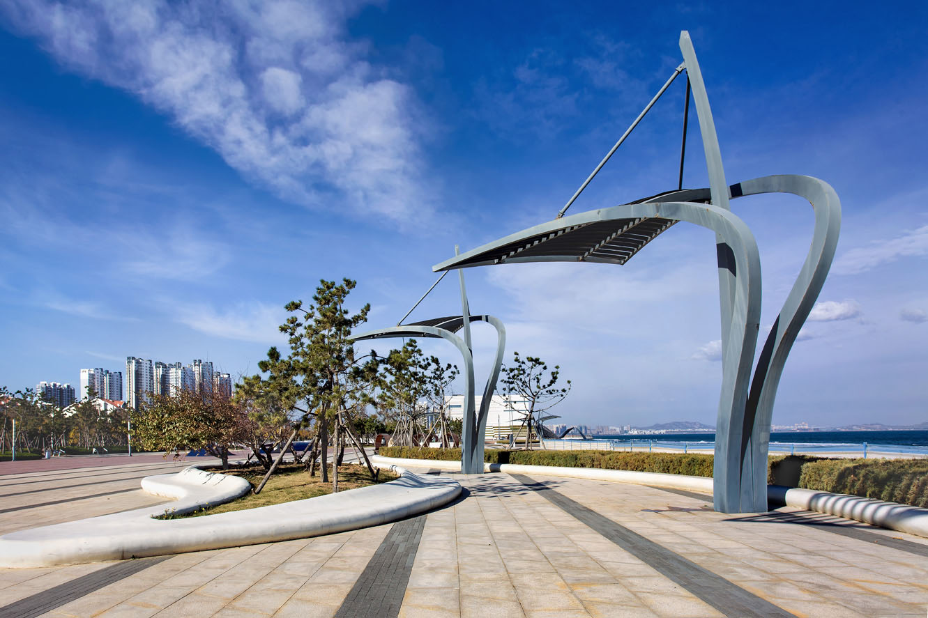 Het Urban Exhibition Center is een onderdeel van het Yantai Gold Beach Project dat is ontwikkeld door Edwin Chan, een architect van Chinese afkomst die z’n basis heeft in Canada. Het project omvat een 10 kilometer lange kuststrook met ruime wandel- en recreatiegebieden waar volgens Edwin Chan’s website natuur, stadsleven en vrijetijd samen komen. Gedurende wandelingen in het Gold Beach gebied heb ik dat gevoel ook zo beleefd en vind ik het concept daarom erg geslaagd.