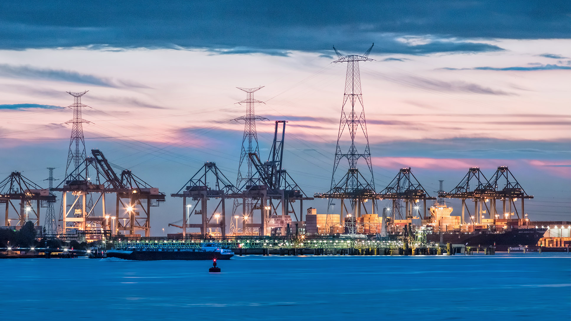 Het ontdekken van de ideale plekken om er goede shots te maken is een avontuur op zich. Dat is nogal tijdrovend, want het zijn meestal afgesloten industrieterreinen die je als onbevoegde niet mag betreden. ’s-Nachts is het er op z’n best vind ik. Olieraffinaderijen en containerterminals kijken niet op een lampje meer of minder en zodra het duister is ingevallen, baden ze in het licht! Tjonge, wat is dat fotogeniek! En de pret begint elke shoot opnieuw bij het bekende blauwe halfuurtje.