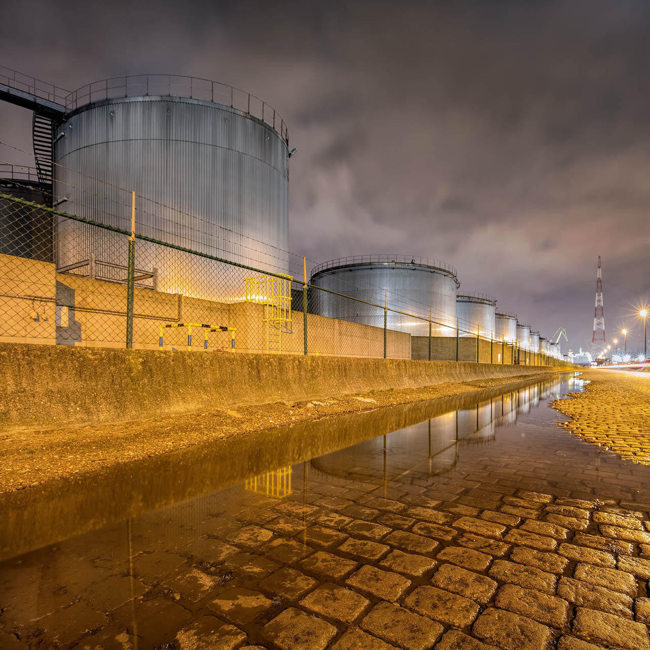 De derde spot is weer een olieraffinaderij met enorme overspanningen voor pijpleidingen. Dat geeft met een groothoeklens van 17 tot 24mm prachtige beelden met een boeiend lijnenspel. Op de vierde locatie kijk je vanaf een kade over de rivier op een raffinaderij met een gigantische toren, waar meestal tankers aangemeerd liggen. Met een teleobjectief van 100 tot 135mm maak je daar ook schitterende foto’s, vooral wanneer de rookpluimen een beetje mee willen werken.