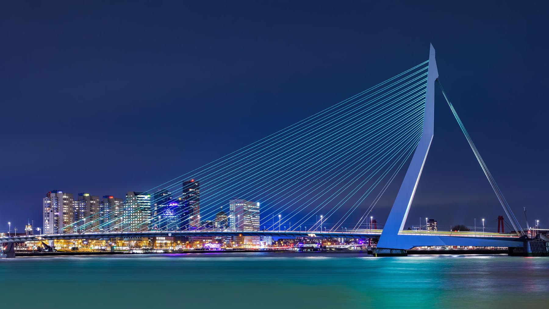 Oh ja, de naam van de brug is een ode aan de beroemde Nederlandse priester en humanist Erasmus. Kenmerkend voor het winnende ontwerp van Ben van Berkel is de tuibrug met een enkele geknikte pyloon. Persoonlijk vind ik het nog steeds een toonbeeld van design, wat z’n charisma nog lang niet heeft verloren. Door de jaren is het bovendien de absolute icoon van de Havenstad geworden en de zestiger jaren Euromast van architect Maaskant van de troon gestoten.