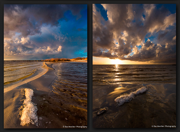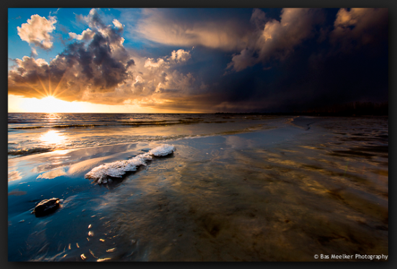 Een mega winterstorm naderde vanuit het noorden en mijn rustige wachten veranderde in een zenuwslopende race tegen de klok. Kijkend naar de muur van duisternis die met rasse schreden naderde. Allerlei scenario's raasden door mijn hoofd. Dit zou kunnen leiden tot een van de mooiste lichtspektakels die ik ooit heb gezien; de laatste stralen van de zon die de lucht in brand lijken te zetten of juist geen van dat alles om zonder mooie opnames af te druipen naar mijn auto. Het werd een nek-a-nek race met de zon die bijna onderdompelde in de horizon, toen ik de eerste sneeuw zag vallen op nog geen anderhalve kilometer afstand bij mij vandaan. Ik denk dat ik nog nooit zo snel gewerkt heb, in de wetenschap dat elke laatste opname de beste kon zijn voor het 'game over' was. Plotseling werd ik toch gedwongen me snel terug te trekken naar de parkeerplaats, want ik werd overvallen door hevige windvlagen die de sneeuw horizontaal voortjoeg. Ik had het koud. Ik was nat. En ik was blij. Ik hou van maart!