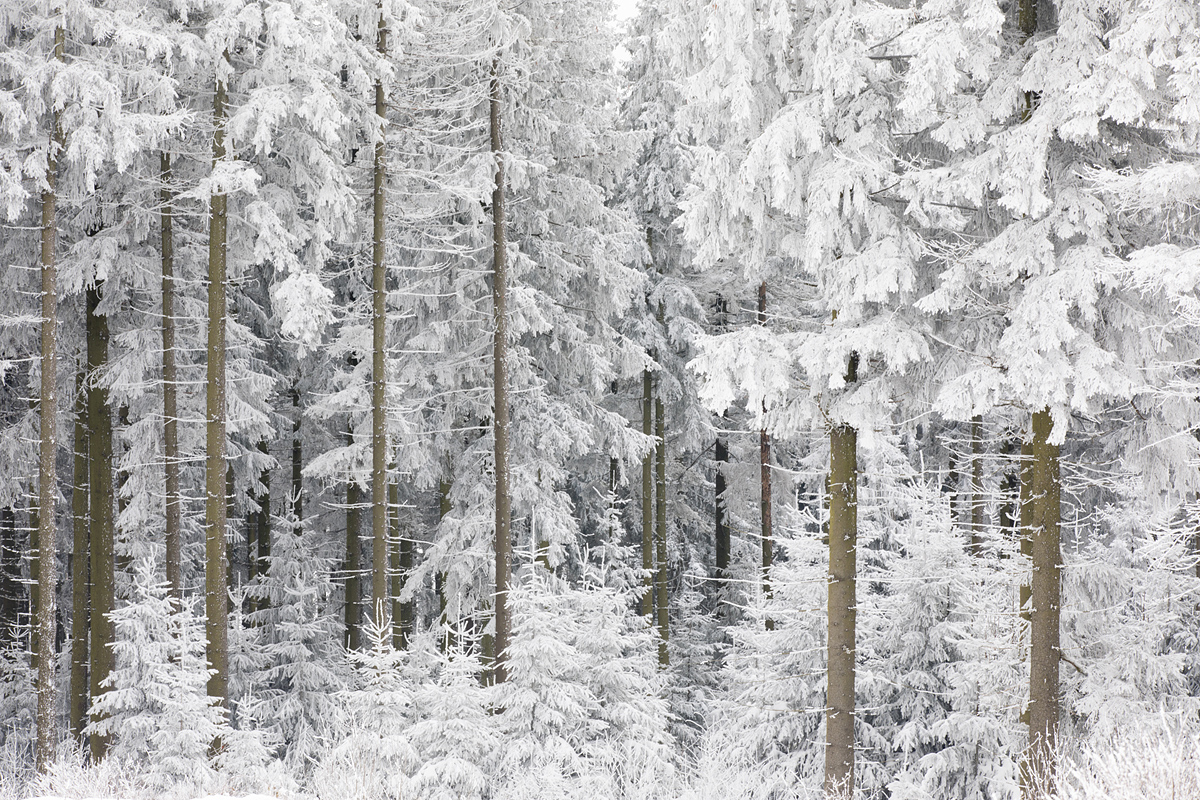 Vorige week was ik samen met Gerard Leeuw een dag op pad in de Hoge Venen nabij Eupen en het was echt prachtig. Overal lag een heel dik pak sneeuw en zelfs de boomstammen van de dichte dennenbossen waren nog bepleisterd met een prachtig laagje sneeuw. Op het open gebied lag wel zo’n 40 cm en stapte je naast het knuppelpaadje dat zakte je tot voorbij je knieën in de sneeuw.