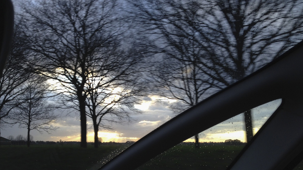 Een half uur ná aankomst rijd ik weer de parking af. Net zoals altijd verbaas ik mezelf er weer over hoe donker het ineens is als je de lichten van de auto aan doet!