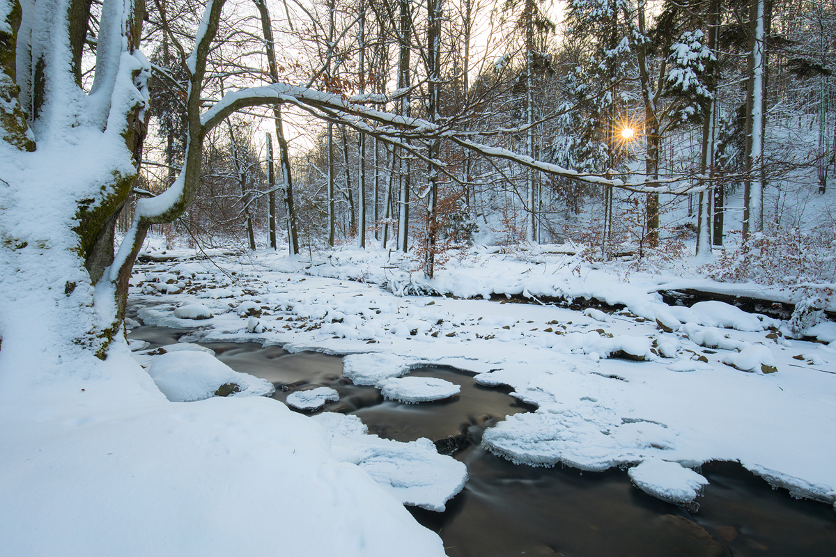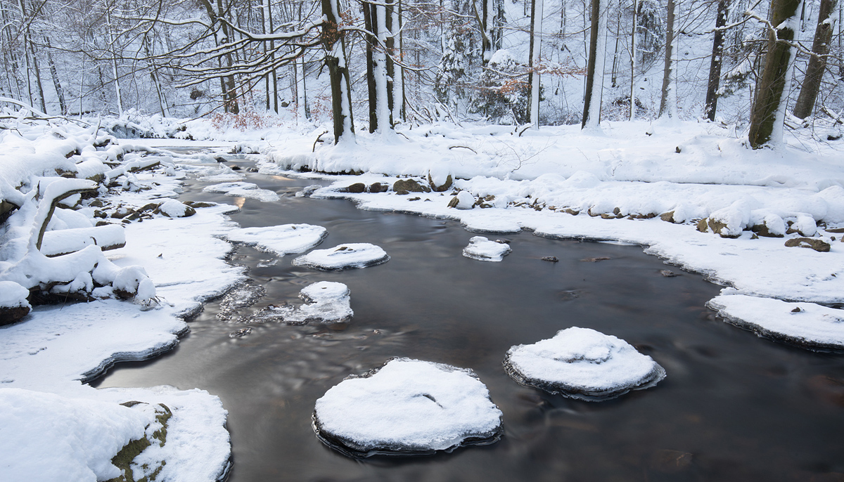 In de middag zijn we bij één van de vele riviertjes die door dit gebied kronkelen aan de slag gegaan en dat was nog behoorlijk lastig omdat het geheel erg druk oogde. Door te zoeken naar elementen die aandacht trekken (zoals de ronde cirkels in de foto hieronder) vond ik wat rust in de foto’s. Het zonnetje op de 2e foto doet het ook wel lekker vind ik! Het ijs in het water was sowieso leuk om mee te spelen, alhoewel ik deze keer toch wat voorzichtiger was dan normaal. Ik had namelijk een camera te leen omdat m’n eigen camera anderhalve week geleden kopje onder is gegaan tijdens het fotograferen van ijs-structuren in een sloot…