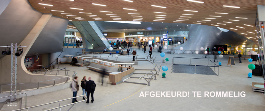 Eerst een afgekeurde foto. Wie die afkeurde? Ikzelf natuurlijk! De plek van waaraf ik fotografeerde leek me een logische, mooi recht in de stationshal. Bij een rechte hal zou dat zo maar kunnen zijn, maar met al die verschillende soorten lijnen erin werd dit een veel te rommelige compositie.