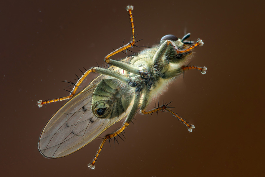 Bestandenvreters Behalve RAW Pre-burst en 40 fps, zijn er nog meer 'bestandenvreters': panorama's, meervoudige belichtingen, belichtingstrapjes, NR meerdere opnamen en scherpsteltrapjes. Van deze laatste montagevorm zie je hieronder het resultaat. Een focus stackmontage uit 20 foto's bij een totaal van 240 foto's (12 trapjes) genomen gedurende 5 minuten van een vliegje op een (vuil) keukenraam. Opbrengst dus 1 JPEG (4 MB) op 240 RAW's (=7.2 GB)! Foto genomen met EOS R7 met EF 100mm en tussenring 31mm.