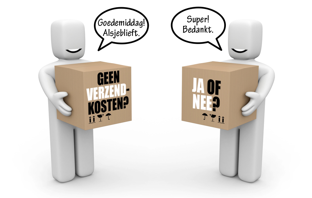 Waarom vinden we het dan steeds meer vanzelfsprekend dat producten gratis worden bezorgd (en geretourneerd), terwijl we er eigenlijk zo veel gemak en voordeel aan hebben? Bij online shoppen vind je áltijd het gewenste product, wordt het vaak de volgende dag al geleverd, hoef je nooit meer door de regen, kost het geen benzine of parkeergeld en - belangrijk - bespaart het heel veel tijd. En voor al dat gemak willen we dus niets betalen. Vreemd, toch? Zeker als je beseft dat onze Patrick het eerste ‘slachtoffer’ zal zijn als een pakketdienst weer moet reorganiseren of failliet gaat. Een gewone, aardige jongen, die heel erg zijn best doet voor een ‘grijpstuiver’ bij mensen thuis pakketjes af te leveren. Alleen maar omdat verzendkosten steeds meer ‘not done’ zijn.