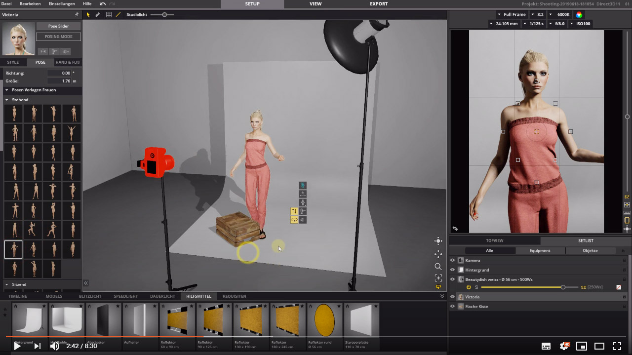 David Bergman van Adorama TV maakte me attent op Set.a.light 3D van Elixxier Software (klik hier). Een programma om virtuele studiofotografie mee uit te voeren (klik hier). Ik heb een proefversie geïnstalleerd en heb ademloos ervaren hoe je op je beeldscherm in real time niet alleen de achtergrond, flitsers, camera en lenzen en props kunt aanpassen, maar ook de outfit, styling, visagie en pose van het model – letterlijk – tot in de puntjes kunt regelen. Allemaal levensecht.