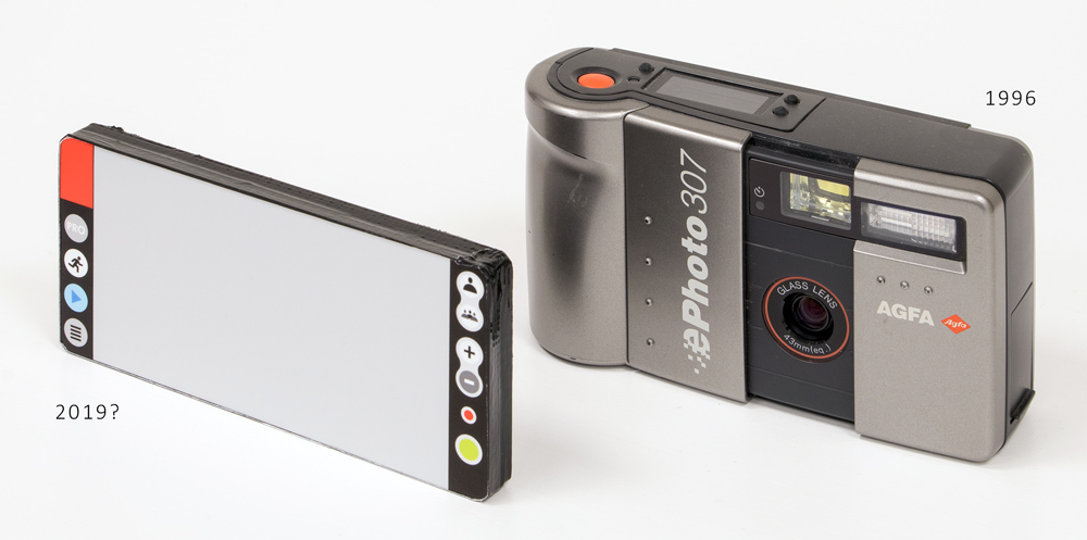 Fotograferen met een 'echte' camera moet niet moeilijk hoeven zijn. Ook mijn gedachtekronkel zal waarschijnlijk allerlei gebruikersproblemen kennen, omdat ik altijd vanuit een camera gedacht heb en nooit vanuit een telefoon. Bovendien bestaat mijn ontwerp helemaal niet.