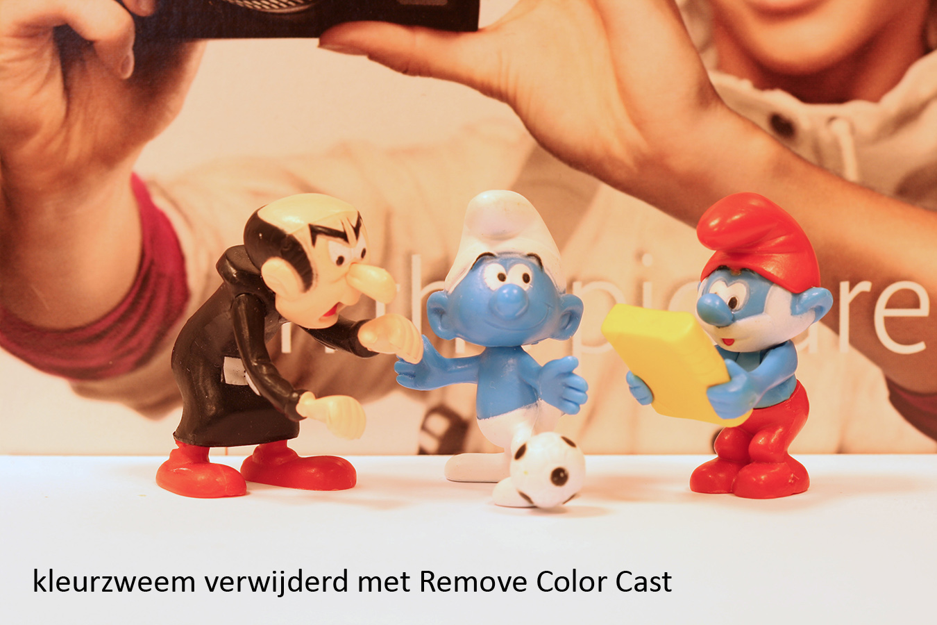 In het menu Verbeteren is een apart submenu (Kleur aanpassen) opgenomen met opties waarmee je de kleuren kunt aanpassen van een foto. Een kleurzweem kunnen we aanpakken met de optie Kleurzweem verwijderen (Remove Color Cast). Het werkt eenvoudig door met het pipet van deze optie op een wit, grijs of zwart onderdeel van de foto te klikken. Dat werkt uitstekend, maar je moet wel op de juiste plaats klikken. Vaak is er wel ergens een wit of grijs voorwerp te vinden. Is het resultaat niet naar wens, klik dan op de knop Reset van het betreffende dialoogvenster.