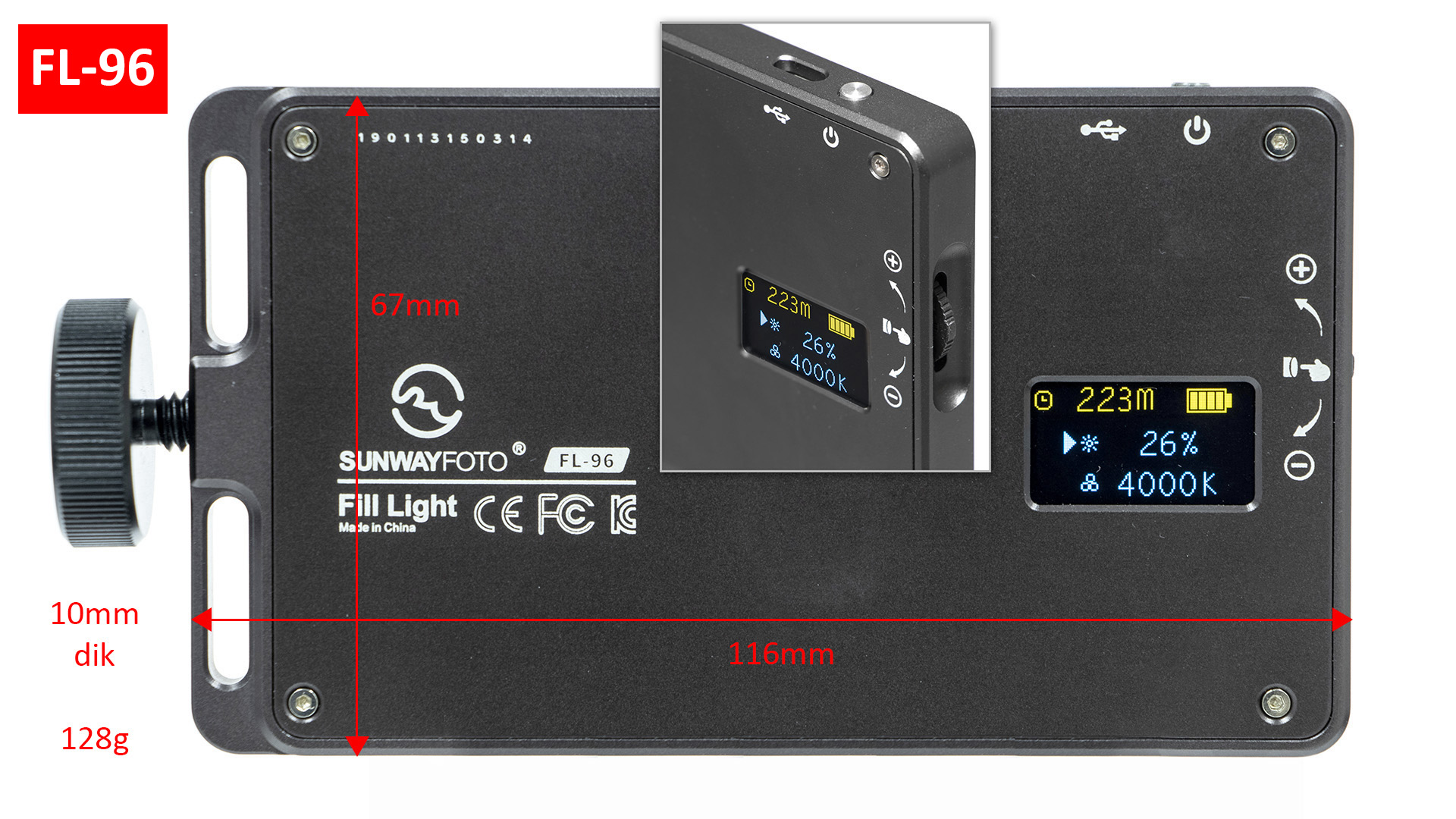 De lampjes zijn mooi ontworpen en heel degelijk uitgevoerd. De FL-96 en FL-120 hebben het formaat van een (kleine) smartphone en passen eenvoudig in een broekzak of kleine fototas. Je hebt dan altijd ‘licht’ bij de hand en in de hand. Alle drie de lampjes zijn voorzien van een accu die op te laden is met micro-USB (telefoonlader) en de FL-120 heeft zelfs een USB-uitgang om als powerbank te kunnen dienen.