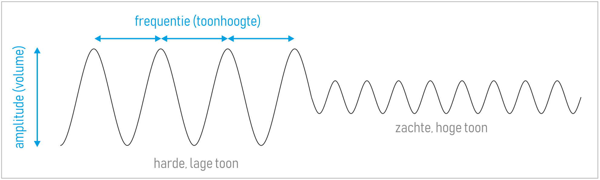 Geluid lijkt op het eerste gezicht een vreemd fenomeen voor een fotograaf. Als je echter weet dat geluid net zoals licht een golfbeweging is, dan worden plotseling veel overeenkomsten duidelijk. De mate waarin de golven elkaar opvolgen wordt frequentie genoemd en uitgedrukt in trillingen per seconde (Hertz, Hz). Bij licht bepaalt de frequentie de ‘kleur’ van het licht. 400 T(era)Hz is rood en 750 THz is violet met daartussen alle kleuren van de regenboog. Bij geluid bepaalt de frequentie de toonhoogte en het deel dat door het menselijk oor wordt geregistreerd loopt van 20 tot 20.000 Hz (dus veel lager dan licht), respectievelijk van een zeer lage toon tot heel hoge toon.