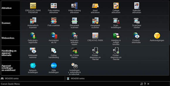 En of al deze mogelijkheden nog niet genoeg zijn, wordt er ook nog eens heel veel leuke en nuttige software meegeleverd in de vorm van My Image Garden, Hiermee maak je in de handomdraai leuke kalenders, kaarten, fotocollages en disc-labels. Ook is er online veel te beleven met het Creative Park Premium.