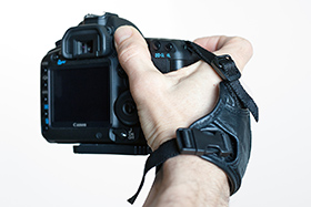 Wil je wel met je EOS in een stad op stap, maar niet dat hij een hele dag aan je nek bungelt, dan kun je ook overwegen een handstrap te gebruiken. Zorg wel voor een versie met een polsriem, zodat de camera niet onverwacht uit je hand kan vallen of ten prooi valt aan een straatrover.