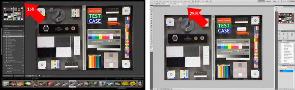 Beoordelen op 25% is dus een prima indicatie voor de weergavekwaliteit op Full-HD. Maar hoe zit het nu met afdrukken? Moet ik dan scherpte en ruis niet beoordelen op 100%?
