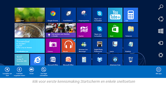 Het Startscherm, de Metro-interface en de apps komen meer tot hun rechts als je werkt op een computer met een aanraakscherm. Is dit van een all-in-one, dan kun je behalve de echte apps ook de zwaardere programma’s als Photoshop en Lightroom draaien. Werk je met Windows 8 RT op een tablet, dan is dat helaas niet mogelijk.