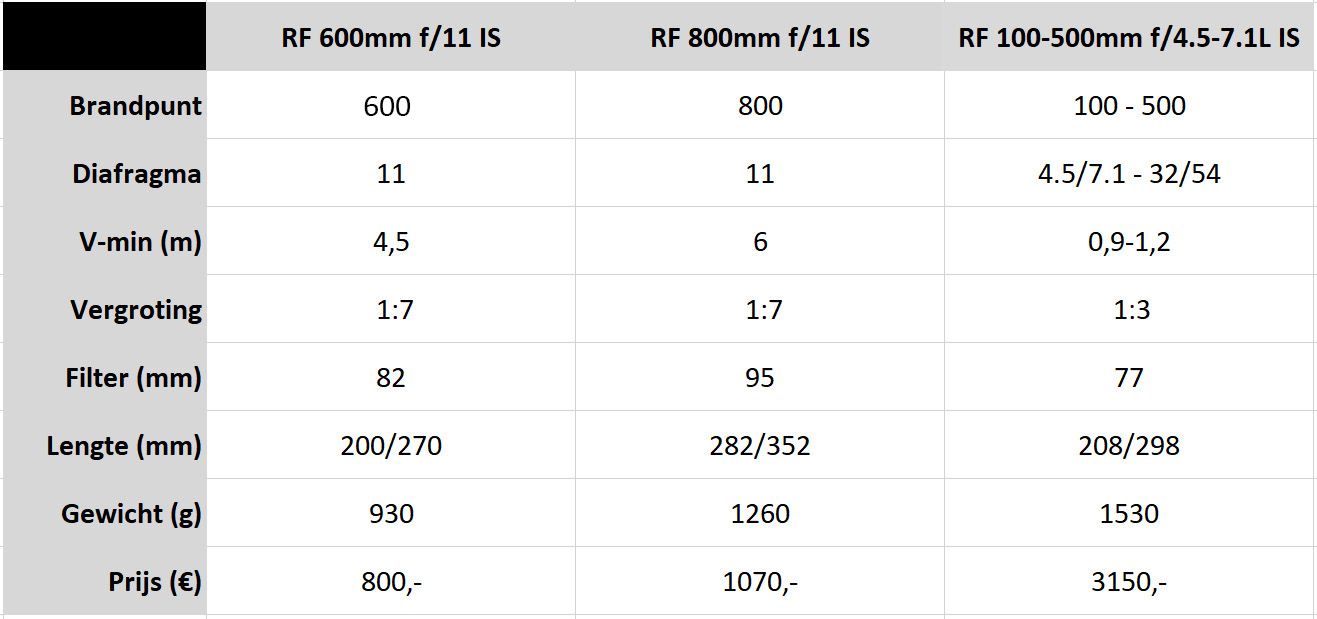 RF 600mm f/11 IS en RF 800mm f/11 IS