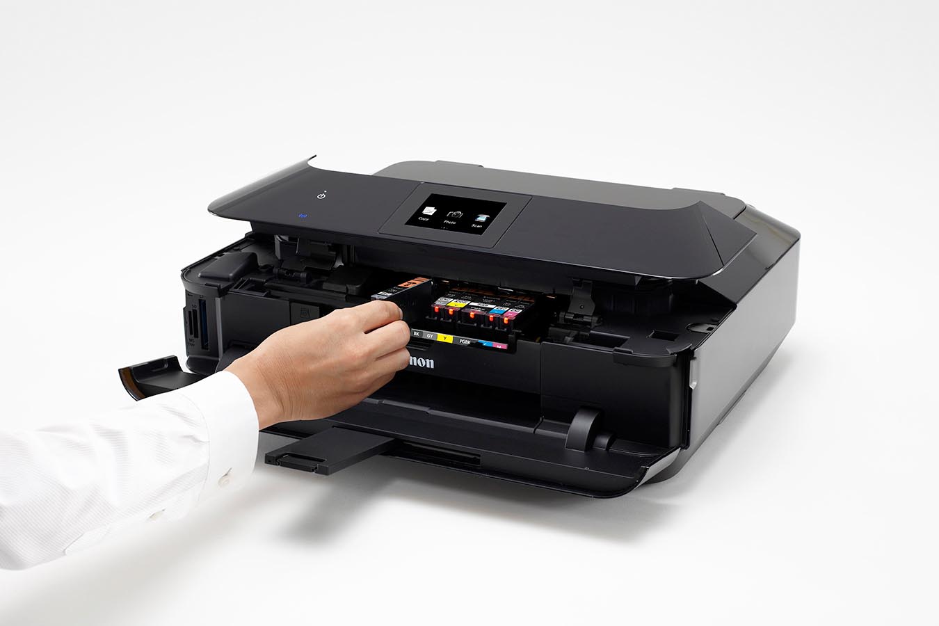 Met de communicatie met andere apparaten zit het dus wel goed met de PIXMA MG6350 en kun je echt alles, overal en altijd afdrukken. Ook de communicatie met de gebruiker is goed verzorgd. Deze PIXMA heeft een aanraakscherm van 8,8 cm en Intelligent Touch op het deksel van de printer. Zo heb je bij elke handeling (printen, kopiëren, scannen of onderhoud) direct de juiste opties binnen vingerbereik.