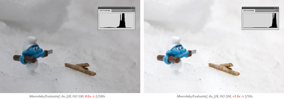 Vind je de helderheid van een foto te donker (bij licht onderwerp als sneeuw, tegenlicht), dan corrigeer je dat met een positieve Belichtingscompensatie (tot +3 Ev met stapjes van 1/3). Is een foto te helder (bij donker onderwerp als bos, avondfoto, zonsondergang), dan gebruik je een negatieve Belichtingscompensatie (tot -3 Ev met stapjes van 1/3). Met dit ‘plussen-en-minnen’ verhoog je de 80% van de ongecorrigeerde Meervlaksmeting tot 95%. De laatste 5% voor een perfecte helderheid doe je in de M-stand of via montage op de computer.