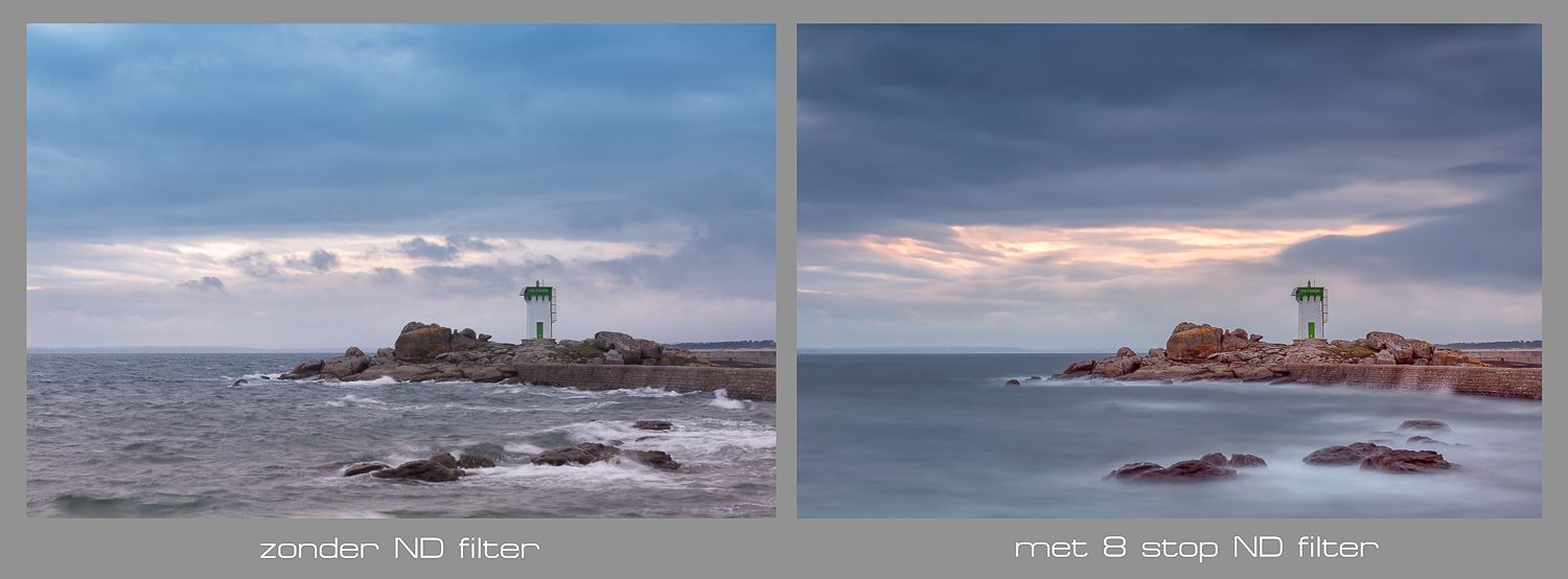Op de eerste plaats staat voor mij de ND-filters (Neutral Density, grijsfilter). Je zal ook wel de woorden Big Stopper, Little Stopper, variabele ND-filter gehoord hebben. Dit zijn allemaal termen voor ND-filters. Deze komen in verschillende sterktes van 1 stop tot 16 stops en kunnen we gebruiken in combinatie met elkaar.