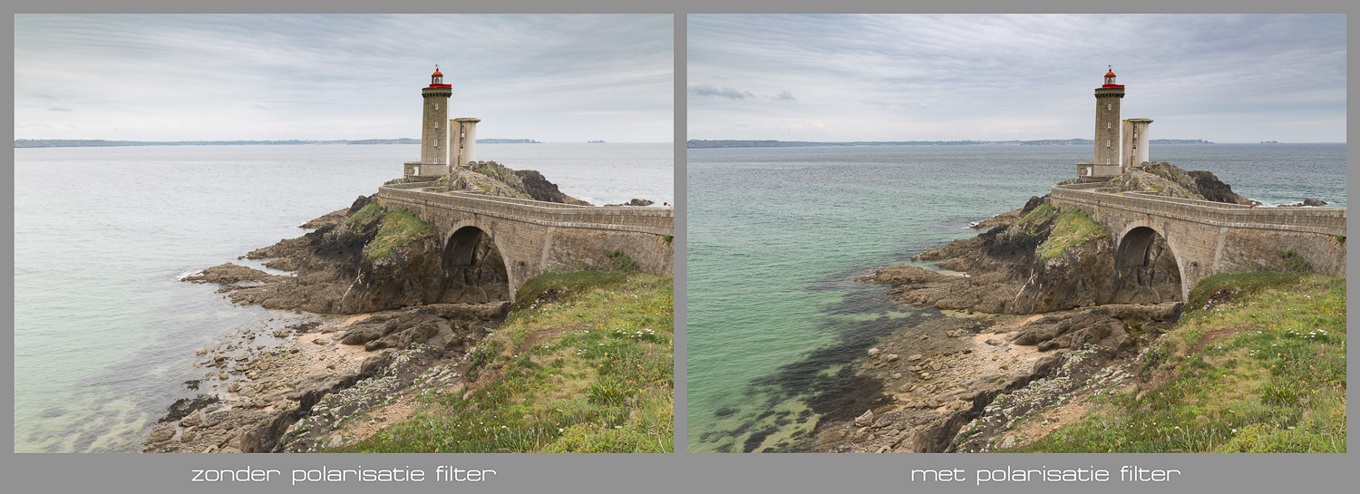 Waarom we de polarisatiefilter gebruiken zie je op de beelden hieronder. Je kan nu door het water kijken en geeft een meer levendige foto.